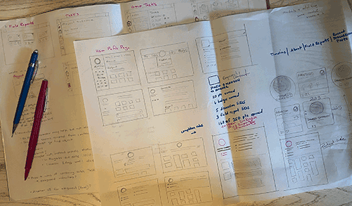 This project was an exercise in the design principle of proximity - group related items together. Professional information was separated from class work artifacts. The challenge was in combining a standard design element, field report tiles, with discussion comments made elseform in the class. The ability to sketch allowed for quick ideation to finding a solution. In the end, I elected for a Pinterest-like approach. By creating a comment tile with a flexible height, comments and field reports could be grouped together, and presented in a chronological order. The contrast between fixed sized field report tiles, and variable height comment tiles is pleasing and intuitive.